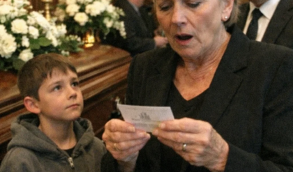 The bikers, a loose circle of leather vests, sun-faded tattoos, and weathered faces, exchanged looks that hovered somewhere between confusion and discomfort, because whatever they had expected from this afternoon, it hadn’t been this, hadn’t been a child offering something like a lifeline with both hands shaking.